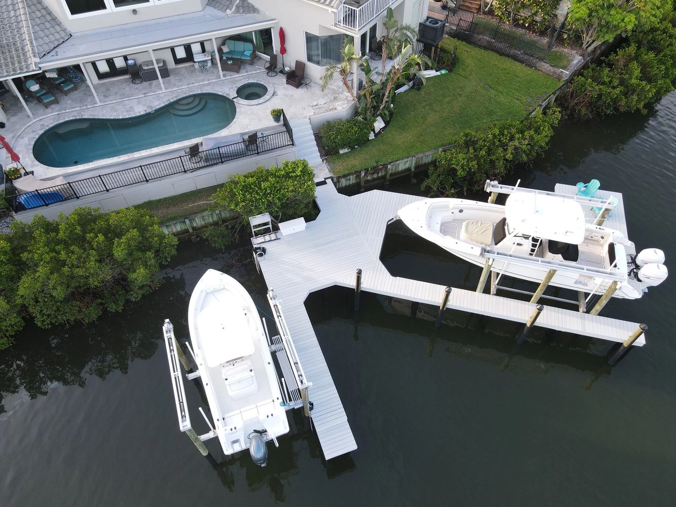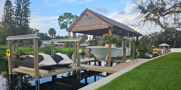 Protect your investment with a high-quality boat lift—custom-built to fit your vessel and shoreline. We offer a variety of lift styles and sizes, all installed with precision and care. Want extra protection from the Florida sun and weather? We also design and install durable roof systems over boat lifts, keeping your boat shielded year-round from harsh UV rays, rain, and debris. Our roof options are built to withstand coastal conditions and can be customized to match your dock or home aesthetic.
